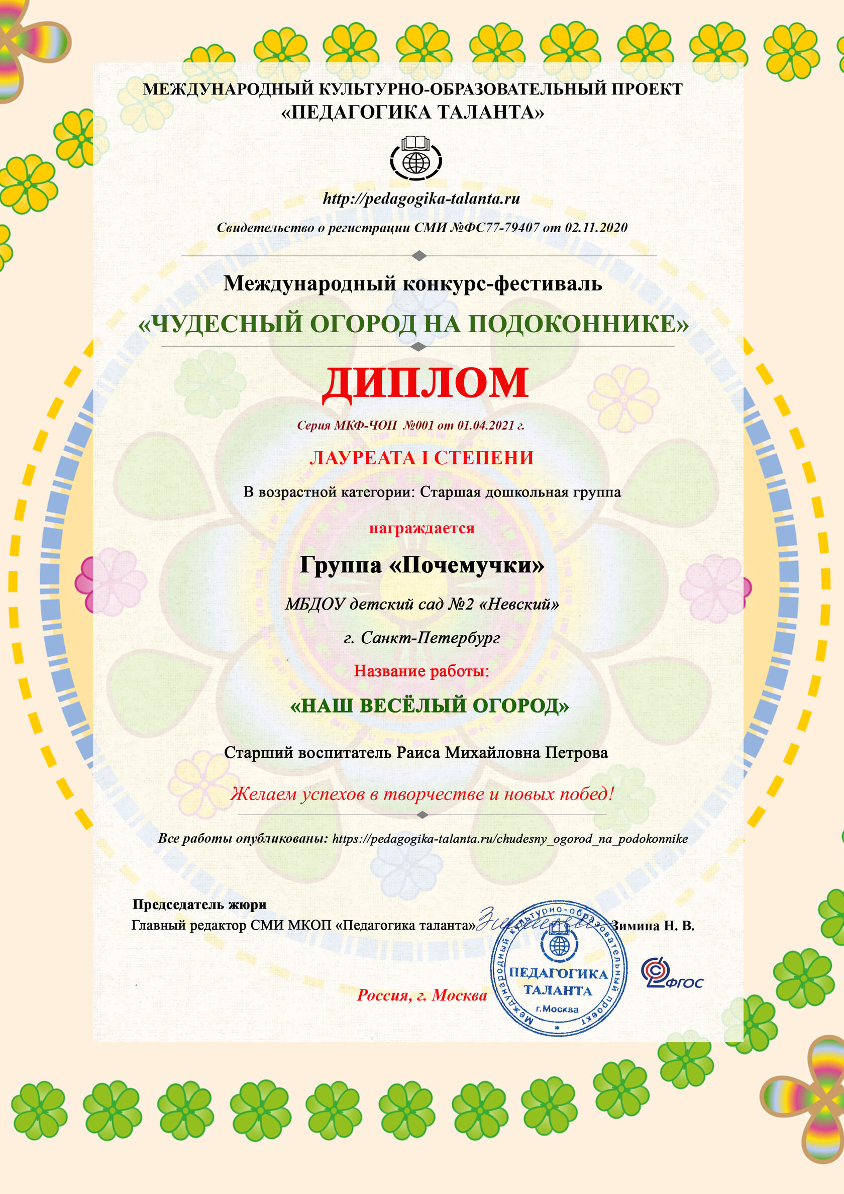 Диплом автору + Благодарственное письмо педагогу + Благодарственное письмо родителям.