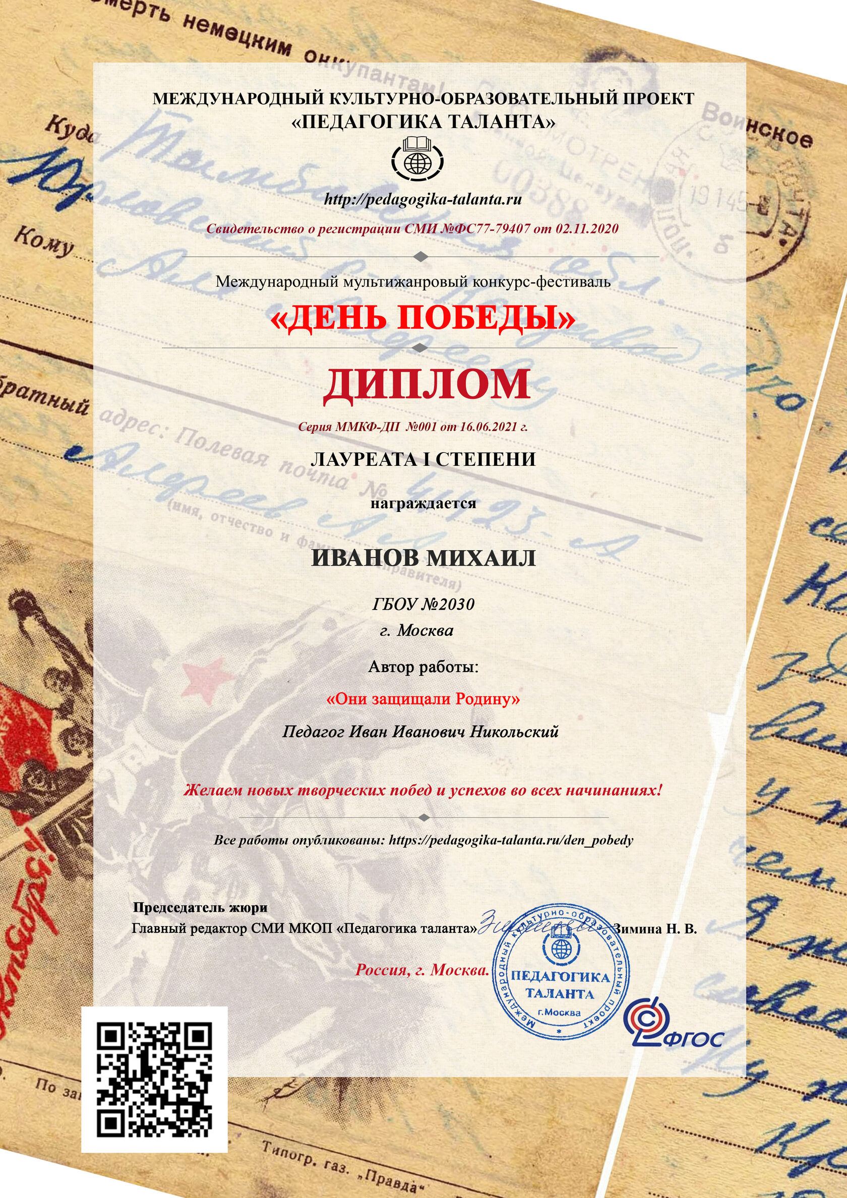 Получите Ваш Диплом (и/или другие наградные документы).