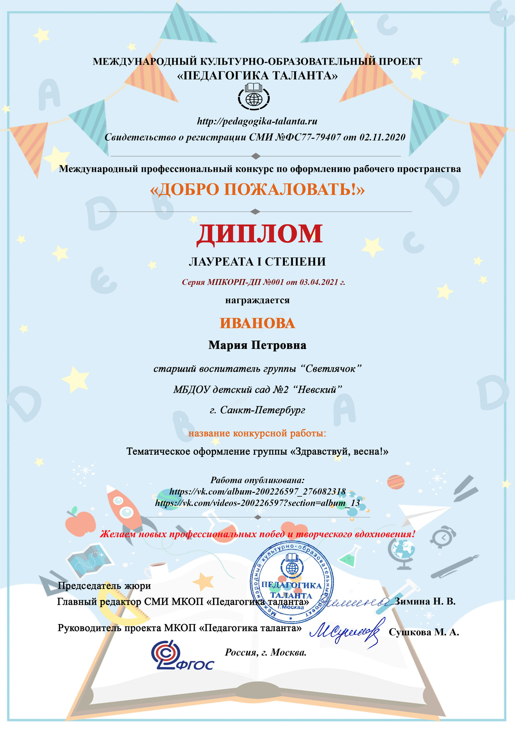 Мы не скачиваем готовые шаблоны из интернета! Все дипломы и наградные документы МКОП "Педагогика таланта" индивидуально разрабатываются дизайнерами. Дизайн каждого конкурса никогда не повторяется.