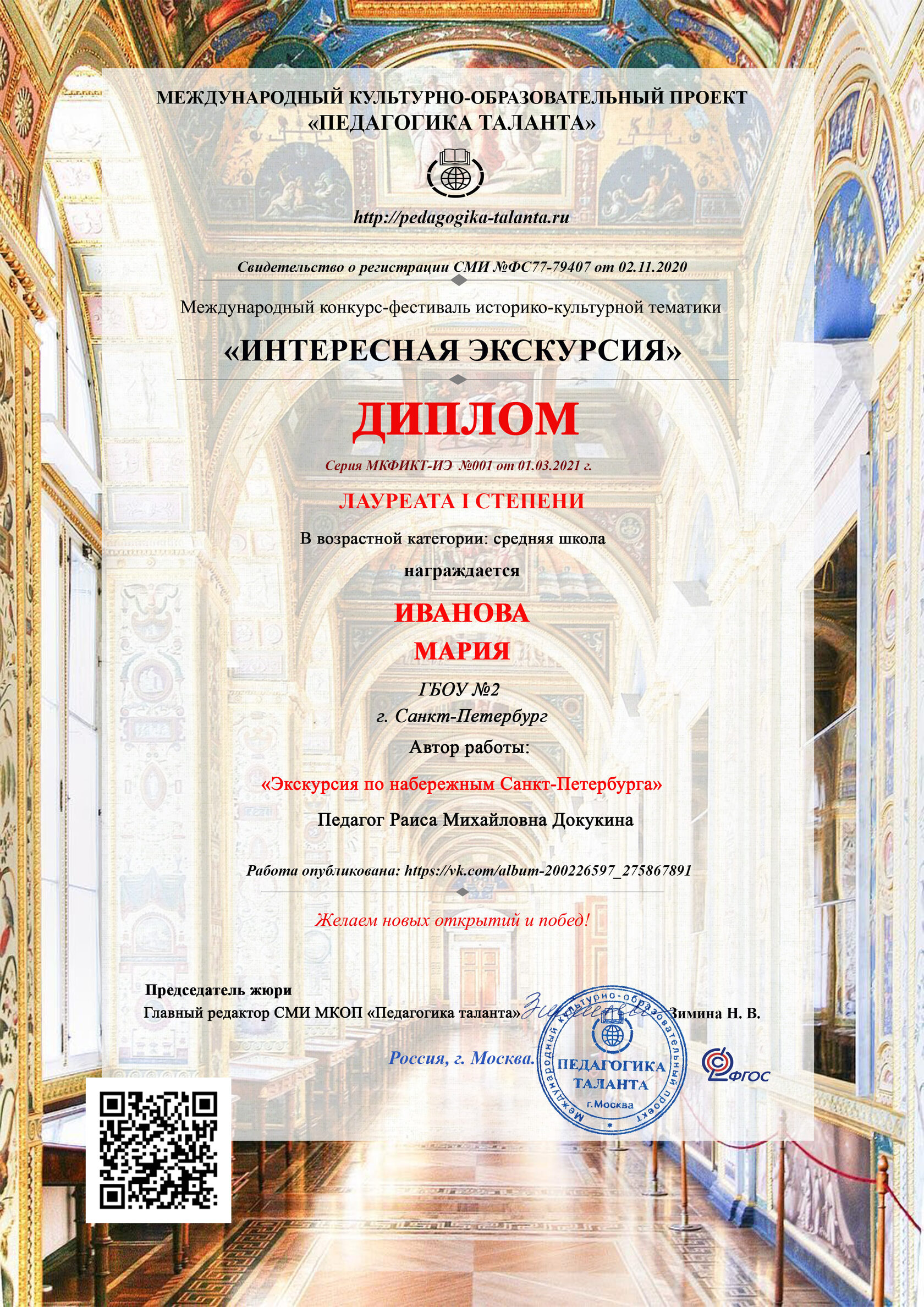 Экскурсия по комплексу школьных музеев школы в Беслане награждена спецпризом. Конкурс "Интересная экскурсия" продолжается! Мы поздравляем наших победителей! Прекрасная творческая работа учеников, созданная при при поддержке педагога.