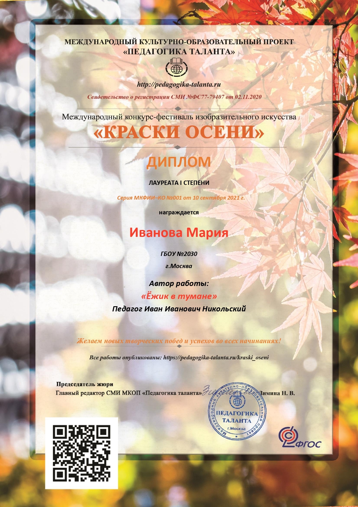 Диплом автору + Благодарственное письмо педагогу + Благодарственное письмо родителям.
