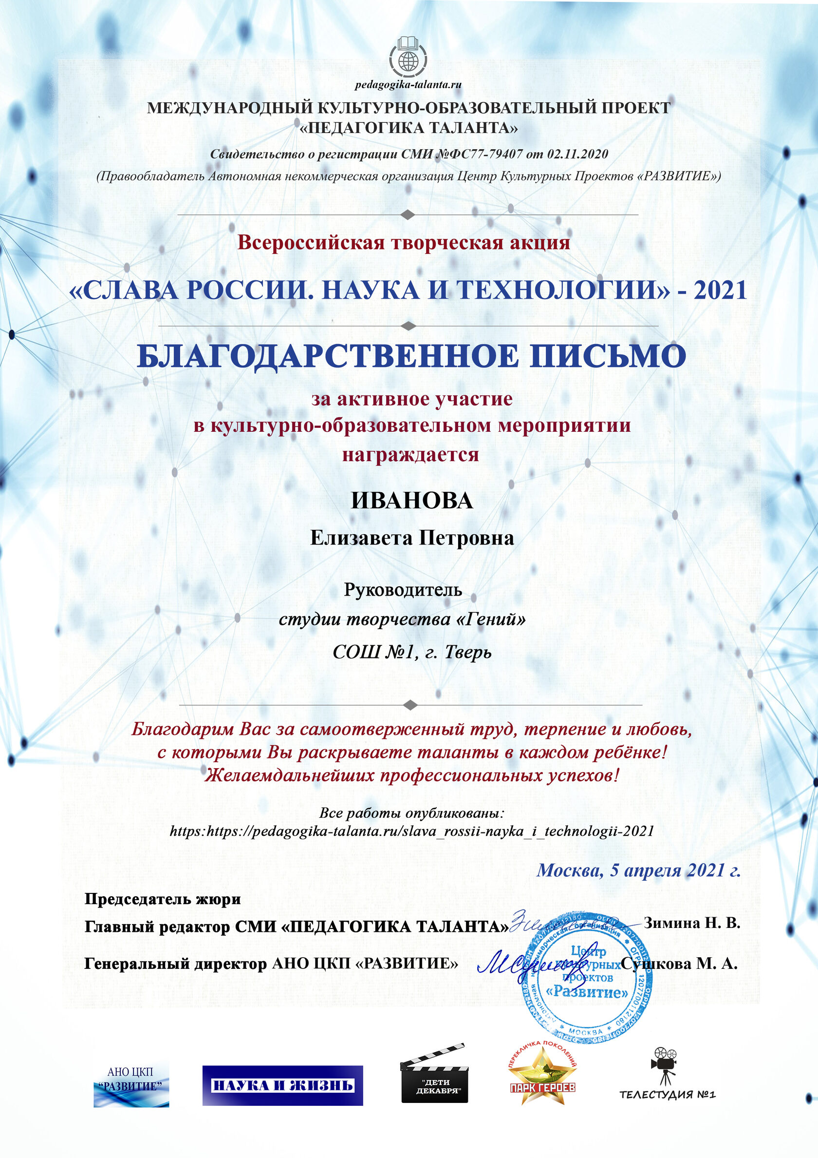 Главные задачи ВТА «Слава России. Наука и технологии» - 2021: - побудить интерес у молодого поколения к изучению биографий советских и российских учёных; истории и современных достижений отечественной науки, которые составляют Славу России; - повысить творческую активность детей и молодёжи; - выявить успешный педагогический опыт, дать возможность педагогам продемонстрировать результаты своего труда и достижения своих воспитанников; - дать новый инструмент в профессиональной деятельности педагогам; - предоставление платформы для установления творческих контактов, укрепления дружеских связей и обмена опытом;