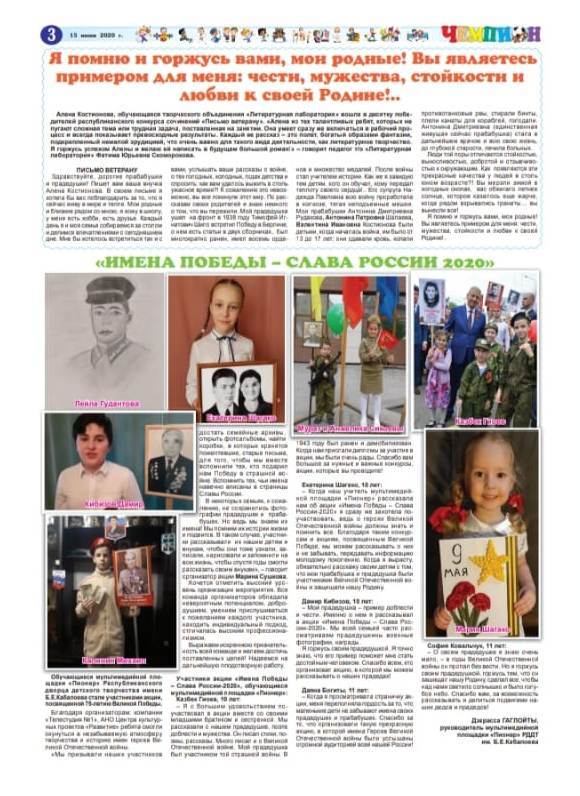 Публикация в газете "Чемпион-ИР" от 15 июня 2020 года